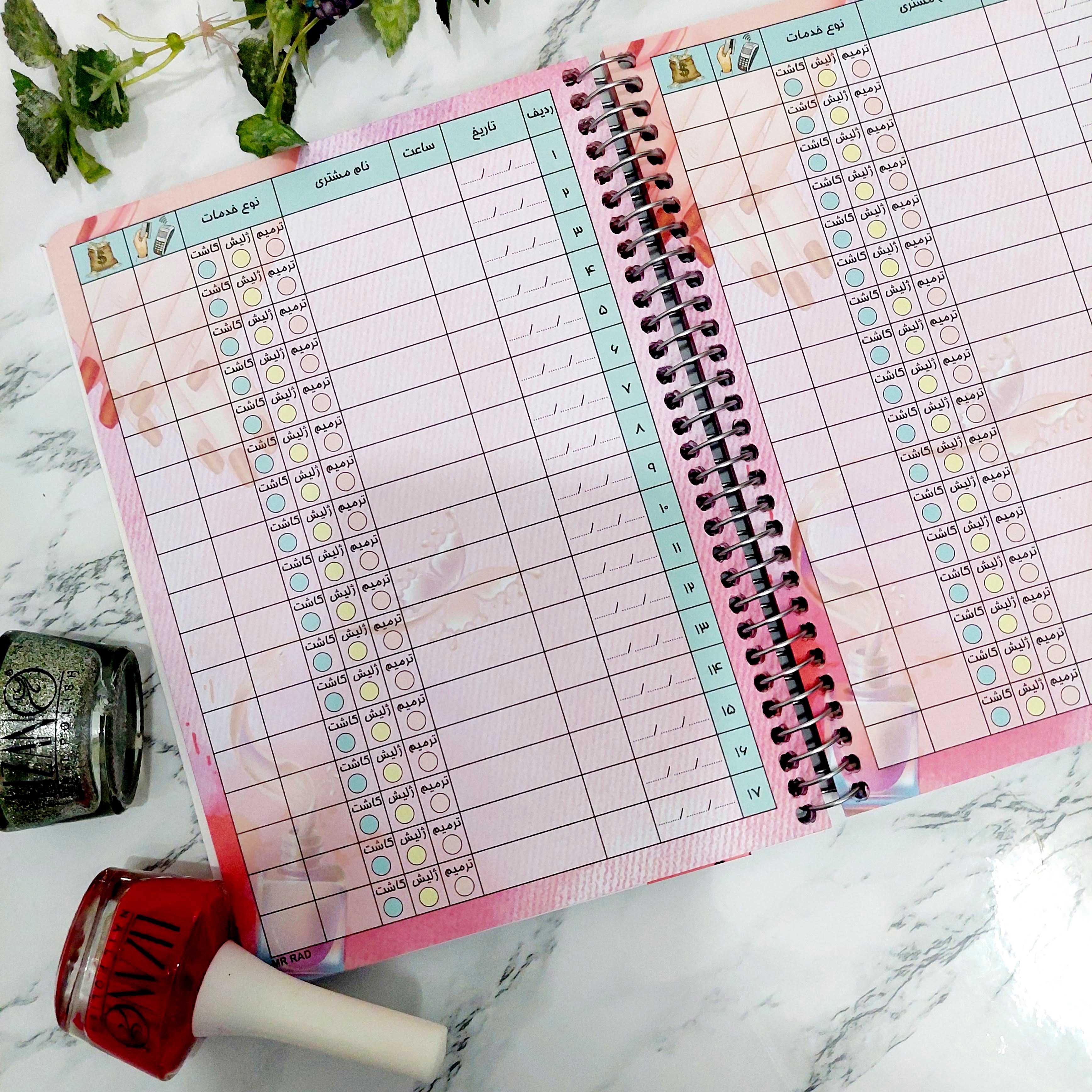 پیشنهاد میشه برای اینکه وقت مشتری ها درست تنظیم بشه از یه دفتر استفاده کنید این دفتر به دلیل جلد سختش فوق العاده برای شما مناسبه چون خیلی دیر خراب میشه