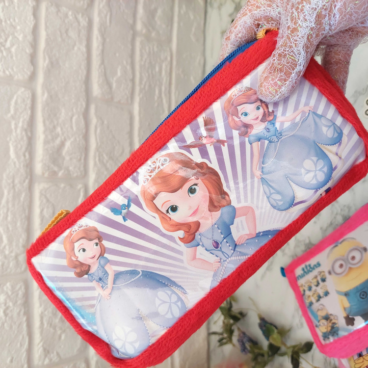 قسمت طرحدار کارتونیش زیر یه لایه طلقه برای همین اصلا خراب نمیشه و رنگش نمیره دورتادور کارهم از پولیشه داخل جامدادی لایه داره و دوختش فوقالعاده تمیزه