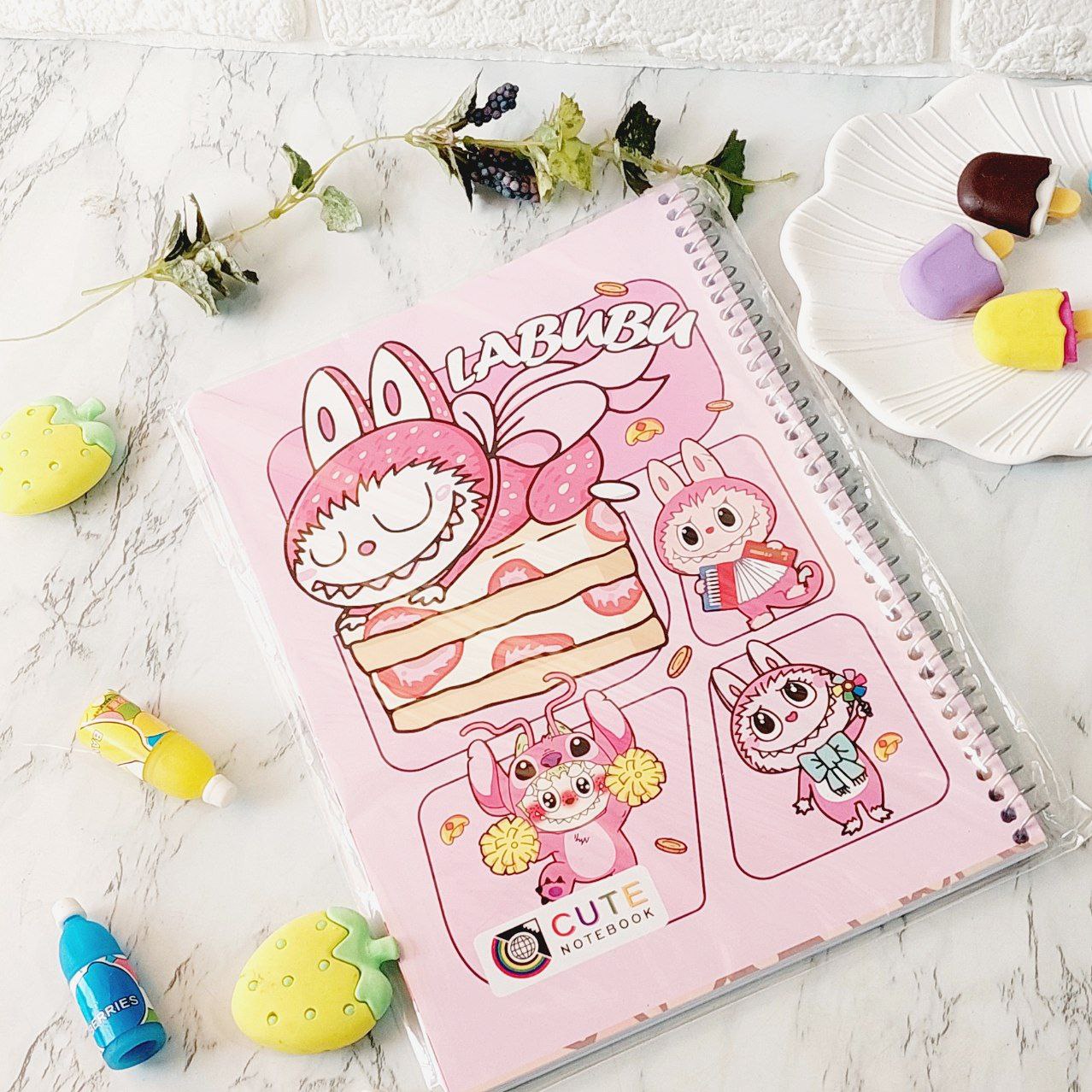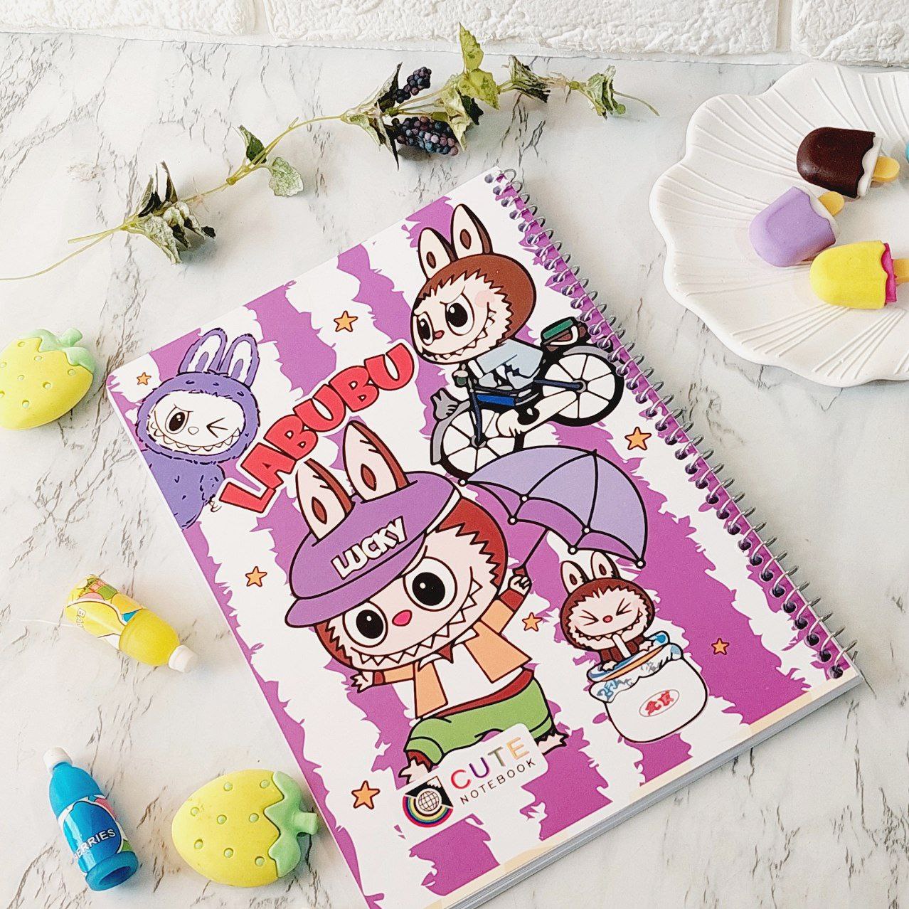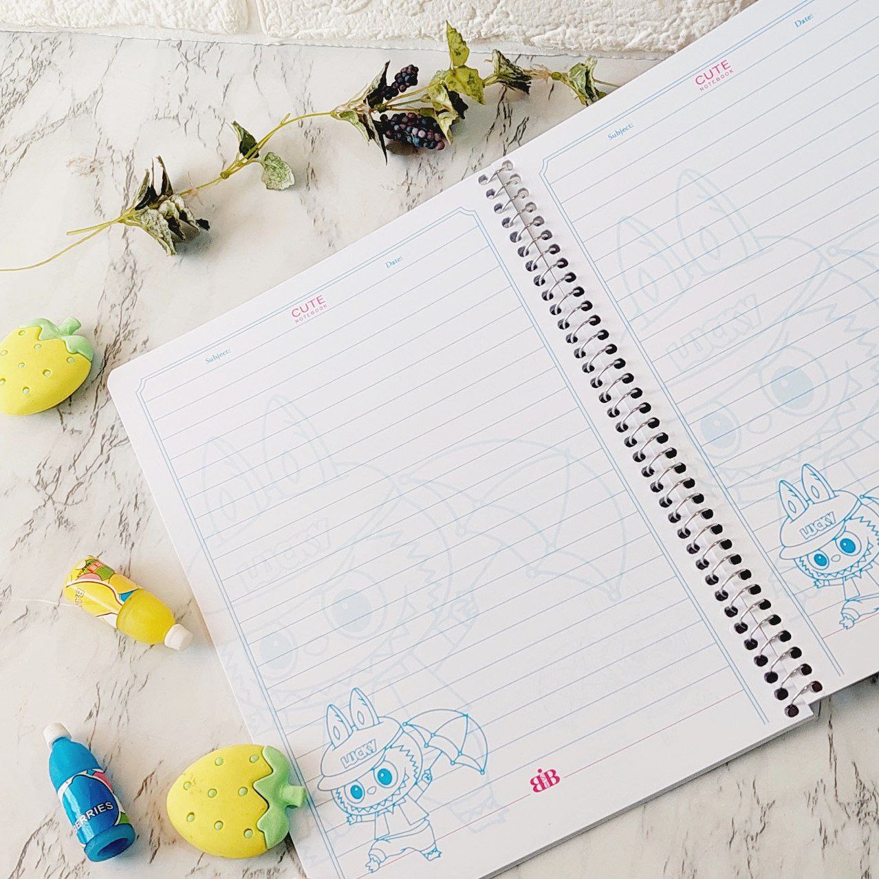 جلد دفتر مقوایی هست و داخلش طرح دار برگه ها بسیار با کیفیت و جذاب هستن و خط ها گی دفتر به رنگ آبی
