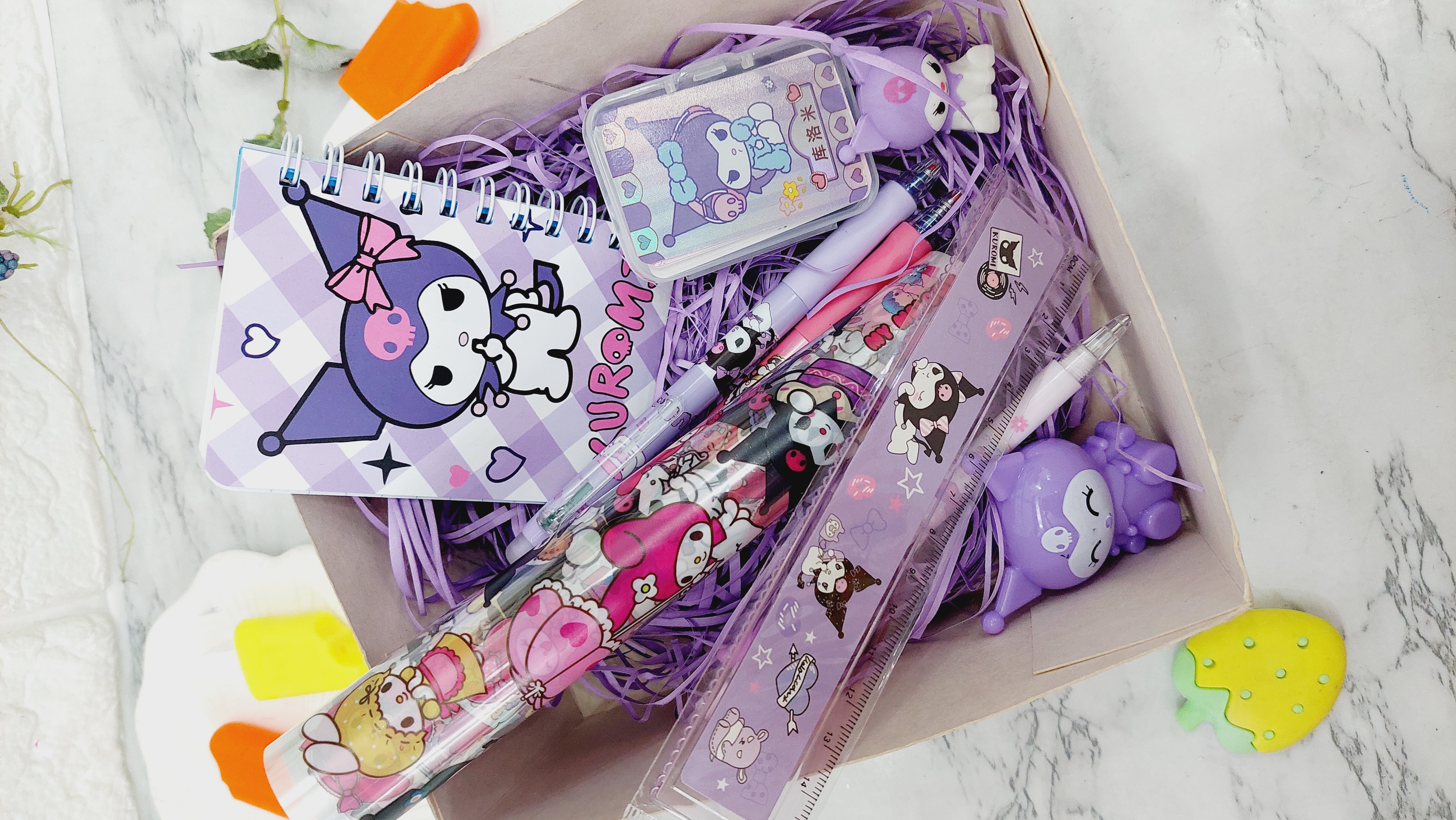🌸🌸🌸بدون جعبه🌸🌸🌸 این پک شامل :یک عدد دفترچه . یک عدد تراش ، یک عدد خط کش کرومی ، یک عدد پاسور کرومی ، یک عدد پاکن کرومی ، یک عدد برچسب رولی کرومی ، یک عدد اتود کرومی ، یک عدد خودکار پاکندار