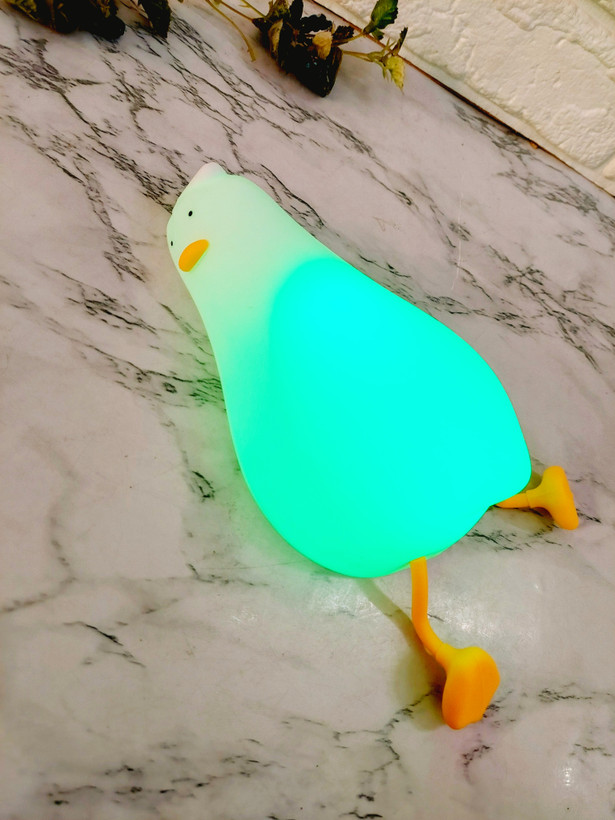 برا هدیه موندی چی ببری این چراغ خواب انقدر کیوت و قشنگه که دل همه رو آب میکنه جنسش از سیلیکونه و نرم و جذابه با ضربه زدن به پشت اردک رنگ نور اردک تغییر میکنه 6 تا رنگ نور داره و یه حالت ثابت نور زرد و یه حالت نور داره که پشت سر هم نورش تغییر میکنه بدون ضربه و اگر هم با ضربه زدن رنگ نورشو تغییر دادی همون رنگ برات ثابت میمونه فوقالعاده با کیفیته و سیم شارژ داره تا شارژش کنی و بدون وصل شدن به برق بتونی ازش استفاده کنی