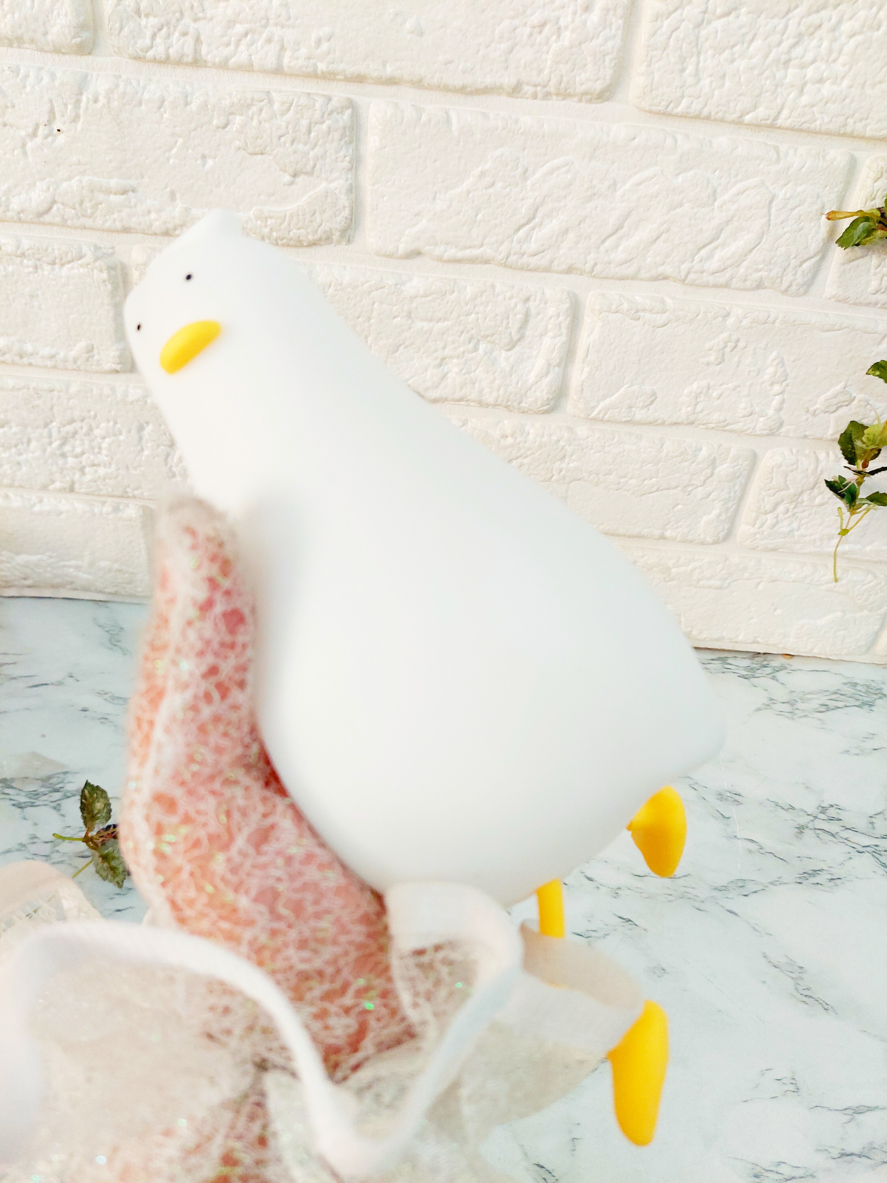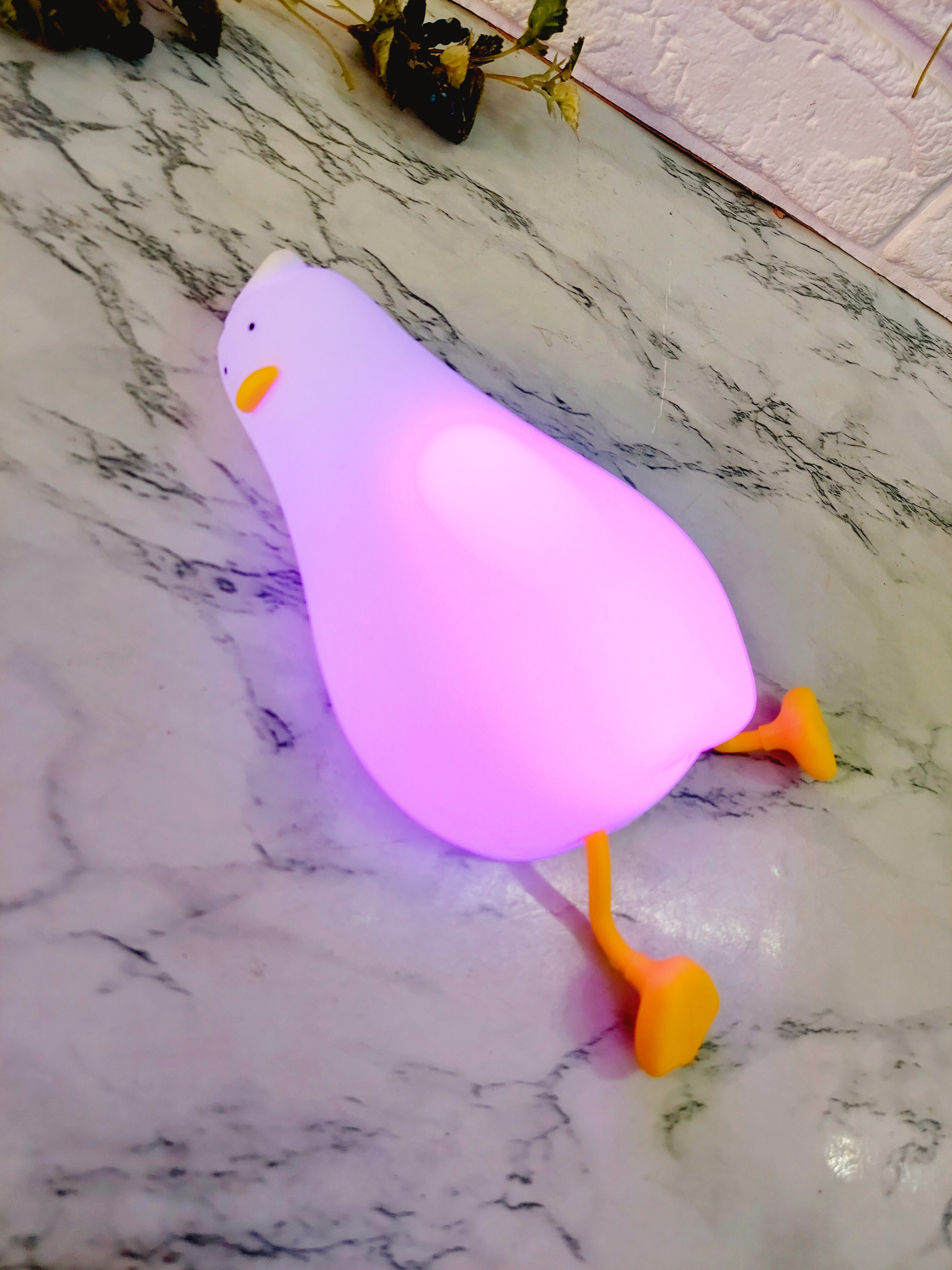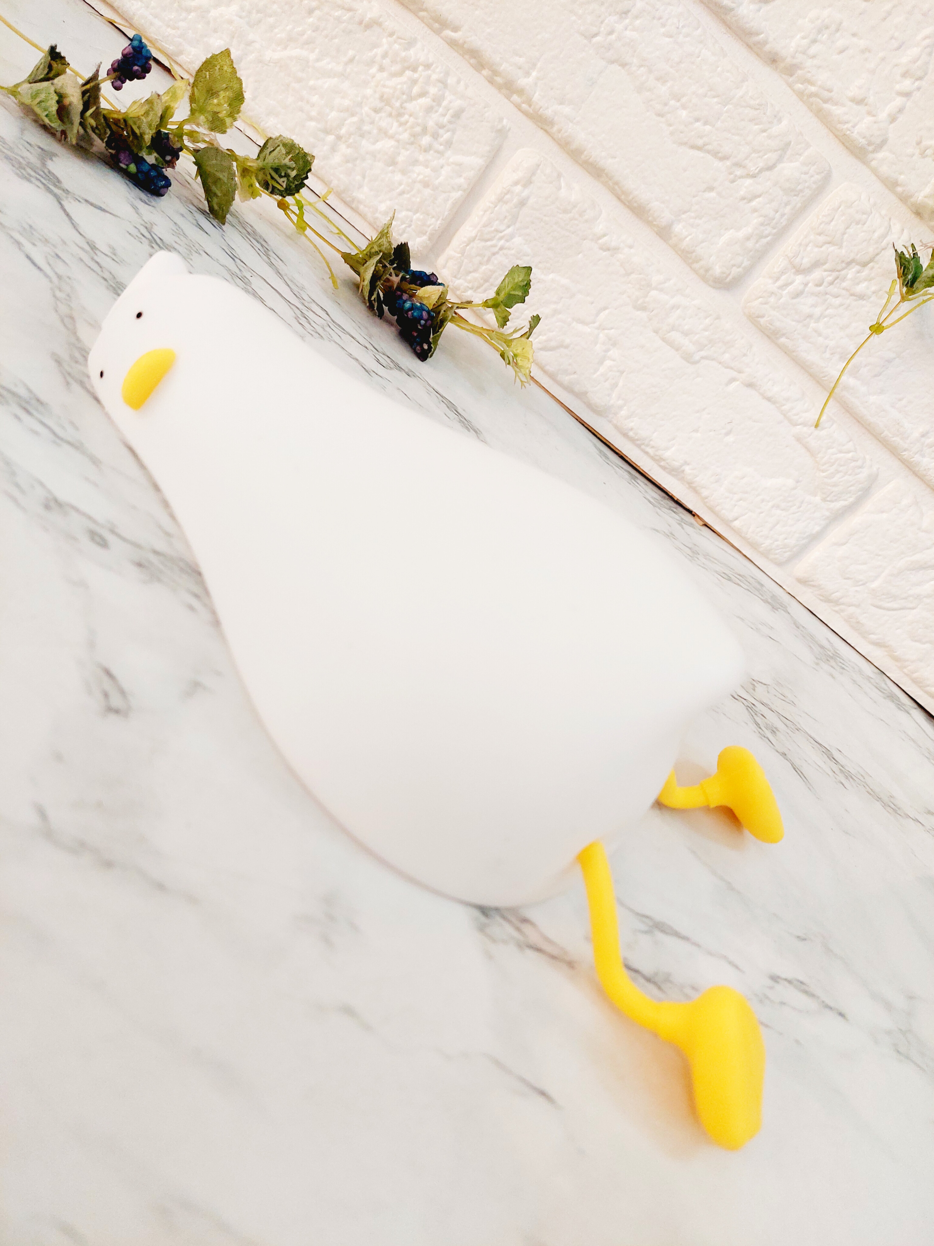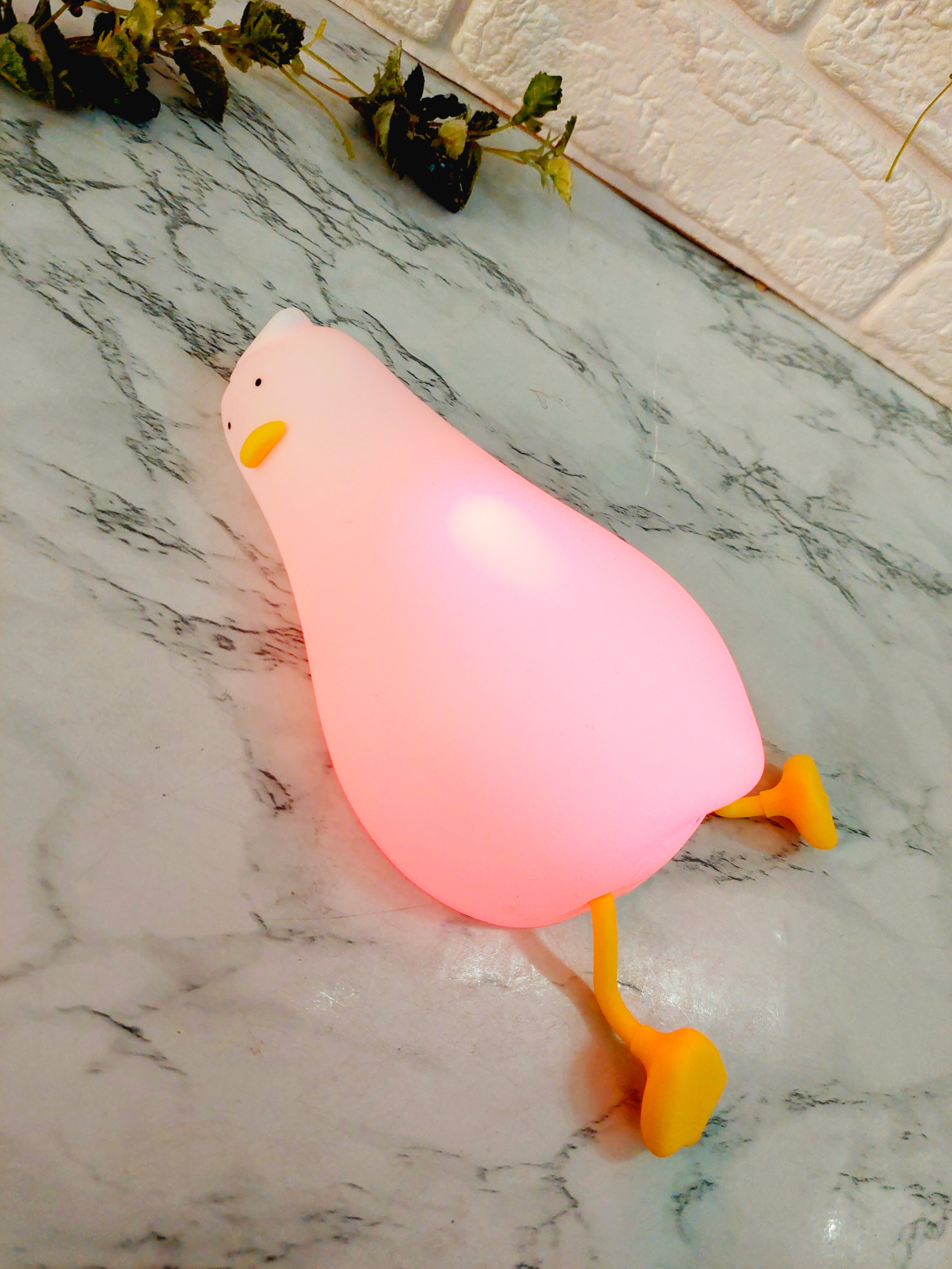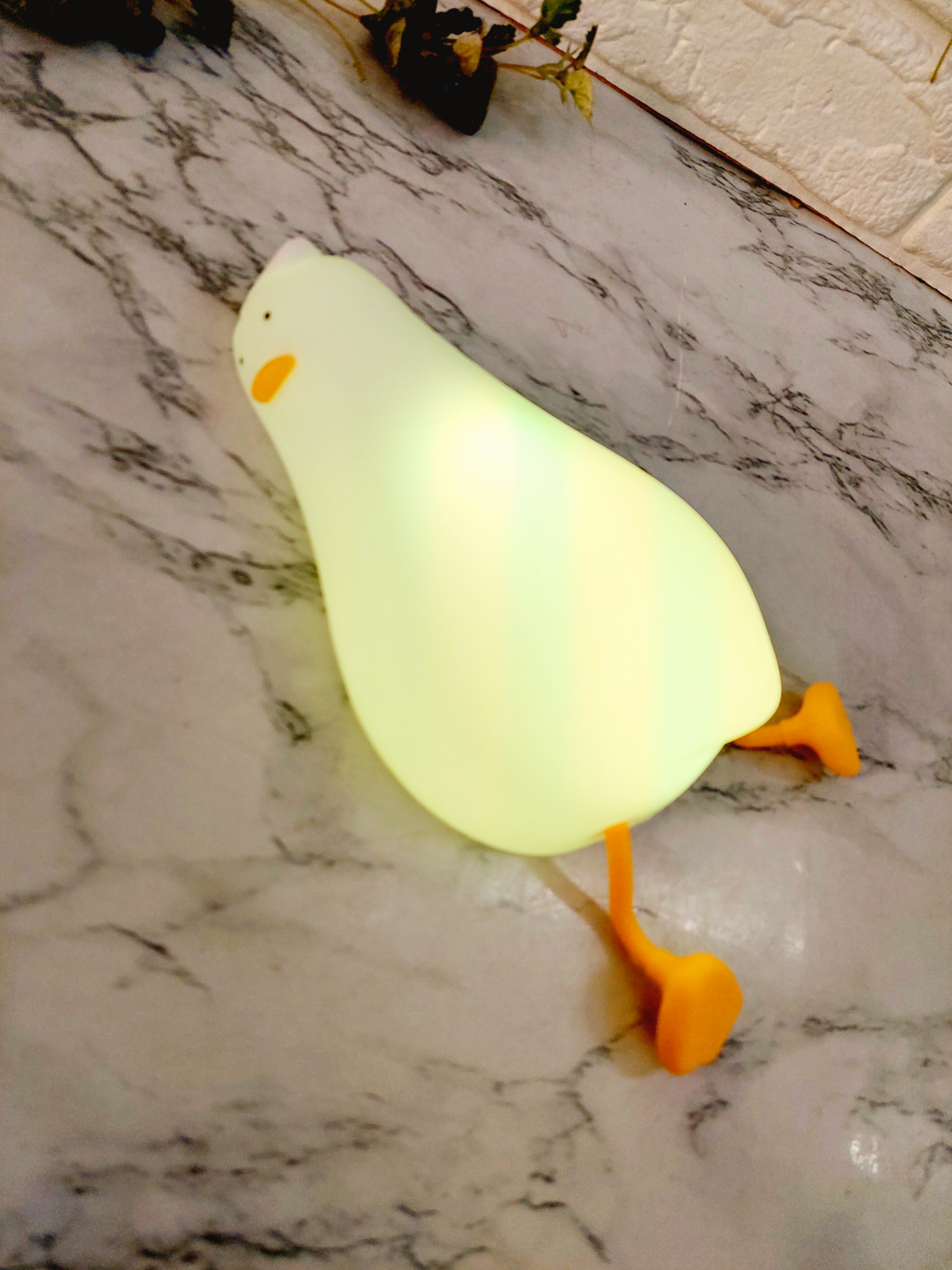 برا هدیه موندی چی ببری این چراغ خواب انقدر کیوت و قشنگه که دل همه رو آب میکنه جنسش از سیلیکونه و نرم و جذابه با ضربه زدن به پشت اردک رنگ نور اردک تغییر میکنه 6 تا رنگ نور داره و یه حالت ثابت نور زرد و یه حالت نور داره که پشت سر هم نورش تغییر میکنه بدون ضربه و اگر هم با ضربه زدن رنگ نورشو تغییر دادی همون رنگ برات ثابت میمونه فوقالعاده با کیفیته و سیم شارژ داره تا شارژش کنی و بدون وصل شدن به برق بتونی ازش استفاده کنی